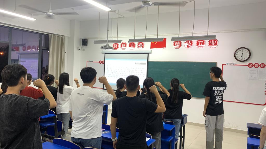 仪式上,优秀学生代表张文鑫带领全体新生进行了庄严的师范生宣誓:“我志愿成为一名光荣的人民教师,忠诚党的教育事业,遵守教育法律法规,铭记 ‘修德立身,精技立业’校训,恪守师德,身正垂范......”随着一句句令人激情澎湃、热血沸腾的誓词铮铮落地,一种强烈的荣誉感、自豪感、责任感和使命感在每位学生的心中油然而生。线上观看的同学也同步参加了宣誓仪式。