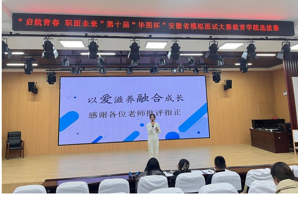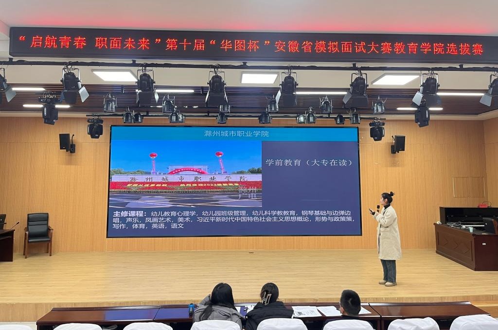 为深入贯彻党的二十大精神,强化就业优先政策,健全就业促进机制,促进高质量充分就业,营造职业生涯规划氛围,12月11日,我院在C2北报告厅举办“启航青春·职面未来”第十届“华图杯”安徽省模拟面试大赛教育学院选拔赛,经过初选,共有9名同学参加选拔赛。