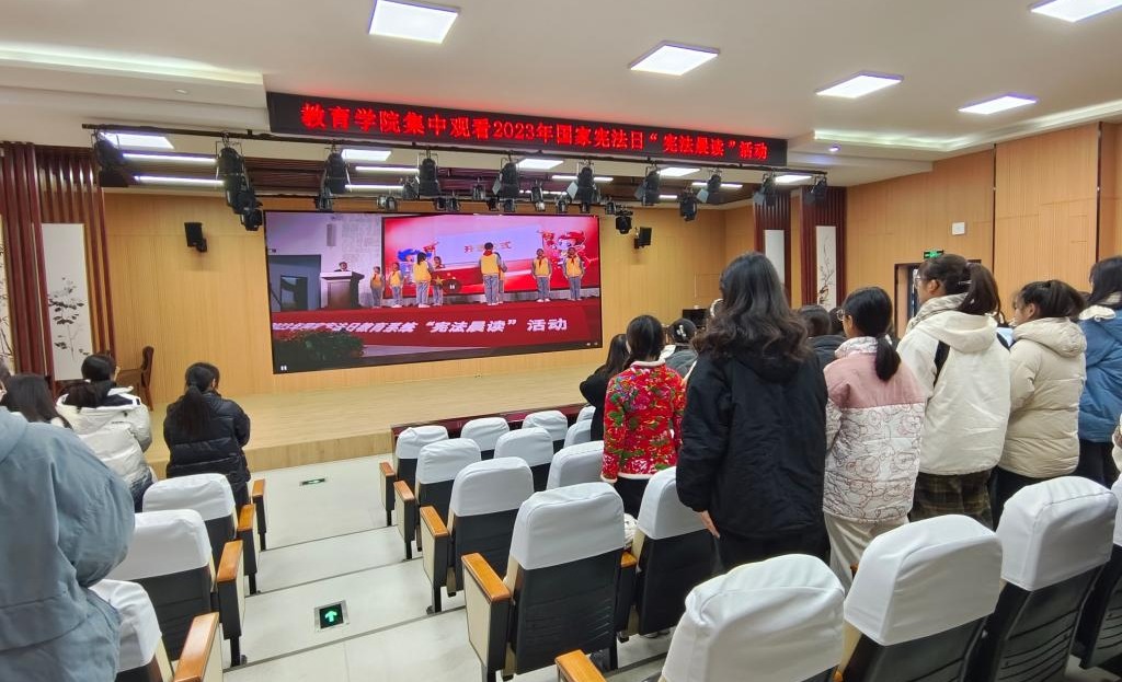 12月4日,教育部组织开展全国教育系统“宪法晨读”活动,我院在报告厅设置集中观看的分会场,全场120余名学生共同参与活动。上午9时30分,我院分会场与全国师生一起举办升旗仪式,进行宪法晨读,合唱宪法主题歌曲《宪法伴我们成长》,观看“学宪法讲宪法”活动优秀学生现场展演等,让青年学生体会宪法温度、感受宪法力量,宪法法治精神得到进一步弘扬。