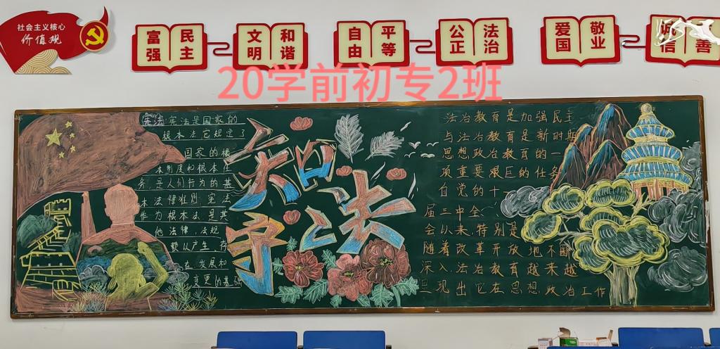 为推动同学们学习宣传宪法,强化宪法意识,弘扬宪法精神,维护宪法权威,增强法治观念,提高法律意识,我院各团支部开展以“国家宪法日”为主题的学法守法黑板报展示活动。通过黑板报的宣传与制作,普及法律知识的同时,也提高了同学们遵纪守法的意识,对宪法有了更深层次的认识和理解,也建立起自己的法治意识,使法治观念深入同学们心中。此外,我院还通过微信公众号、电子屏等宣传阵地营造人人学法的良好环境。