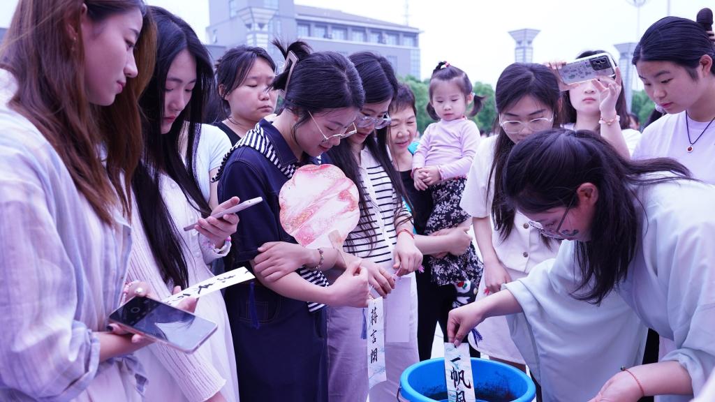 投壶区域不时传来阵阵欢声笑语,大家都沉浸在这古老游戏的欢乐中。而做漆扇的现场则充满了艺术气息,师生们精心绘制,创作出一把把精美的漆扇。