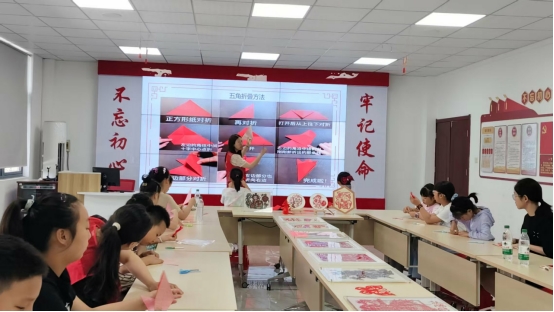 方其琴老师为同学们进行非遗剪纸文化的介绍,从中孩子们能够直观地了解和欣赏感受到传统文化的魅力,了解剪纸的起源、发展以及其中蕴含的民俗文化、寓意等知识,从而增强他们对传统文化的认知和了解。