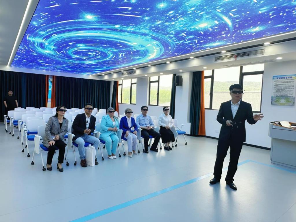 在学前教育虚拟仿真实训基地,叶列茨基国立大学一行先后参观了沉浸式虚拟仿真实训室、MR实训室、桌面式虚拟仿真实训室、虚拟仿真体验中心。我院虚拟仿真研创团队负责人张凯进行了现场演示。