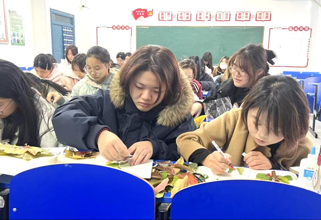 为深入推进“心向阳光 安心同行”心理健康教育工作,引导学生亲近自然、感悟生命真谛,在秋冬交替的静谧时节,12月1日,教育学院心理联合会在恩镇楼110教室开展“拾叶悟生,手作传情”主题活动。本次活动由心理辅导员张童心负责,近30名学生参与其中,在落叶与手作的碰撞中汲取积极心理能量。