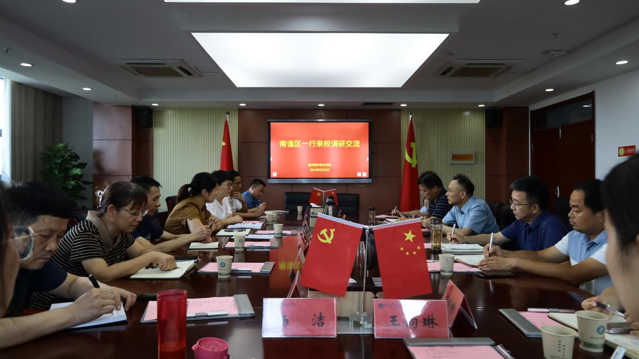 8月20日下午,南谯区委宣传部副部长况敬文、文旅局党组书记、局长项右霞等一行到我校就乡村文化振兴、地方文化挖掘、人才联合培养、旅游业态提升等方面开展调研交流。校党委委员、副校长曹士东,艺术与传媒学院党总支书记杨孝富,科技处处长,旅游文化研究中心主任杜裕民,宣传统战部副部长刘亮,管理与信息学院副院长韩峰参加调研交流活动。