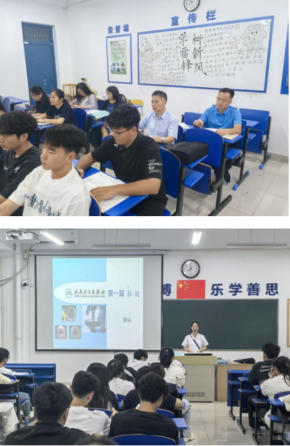 杨如江、朱启来走进24检验高专5班,聆听了曹琦老师讲授的《寄生虫检验技术》;徐旭走进24生物高专班,听取了沈鸿渐老师主讲的《医学遗传学》。听课过程中,校、院领导细致观察课堂教学组织、教师授课状态及学生听课情况。从整体看,新学期教学秩序井然,任课教师备课充分、精神饱满,能有效融入课程思政元素;同学们出勤整齐、听讲专注,展现出积极向上的学习风貌。