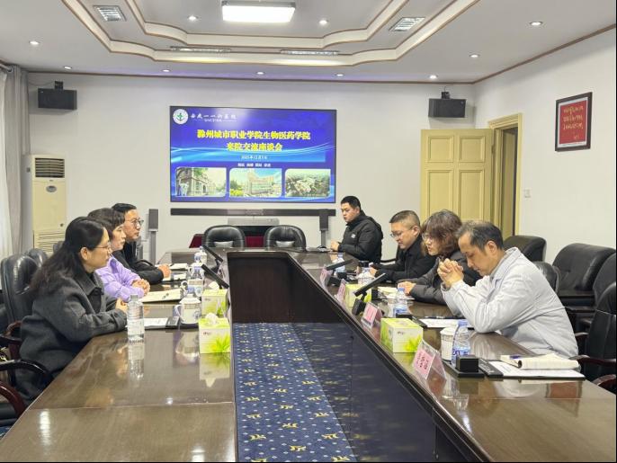 在深化产教融合、拓展优质实践教学资源的背景下,为精准对接药学人才培养与行业需求,12月5日下午,生物医药学院院长徐旭带队赴安庆一一六医院考察交流。安庆一一六医院副院长汪瑞,药学部副主任、教研主任黄勇,科教科副科长路瑶等相关负责人热情接待并参与座谈。