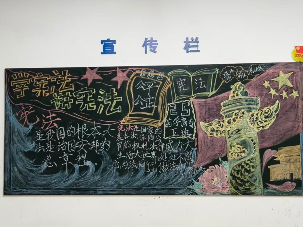 此外,各班级还充分发挥创意,积极绘制了主题鲜明、图文并茂的“宪法”主题板报。一幅幅精美的板报在教室后方形成了一道亮丽的法治文化风景线,以直观生动的方式宣传宪法知识,彰显法治精神,成为同学们课余学习宪法、感悟宪法的重要窗口。