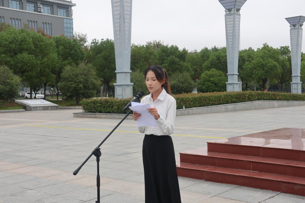 升旗礼毕,学生代表、国家奖学金获得者刘歆作国旗下演讲。她结合个人成长历程,生动讲述将“小我”融入“大我”的实践感悟,表达新时代青年以学识砥砺初心、以实干践行使命的坚定决心。“请党放心,强国有我”——她的发言,是承诺,更是行动宣言,彰显出我校学子与时代同频共振的青春担当。