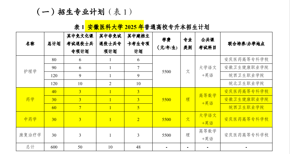 学院各专业报考专升本有关参考信息