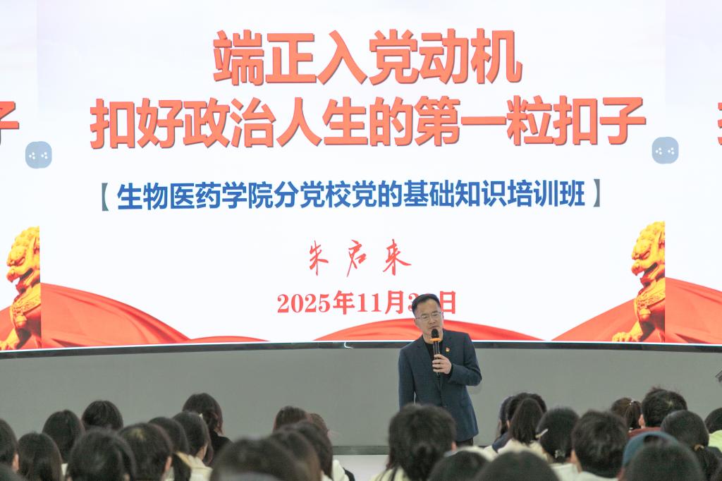 曹慧敏同志作《初心筑梦,笃行致远——入党申请人学生发展专题培训》讲座,鼓励同学们将理想信念转化为实际行动,在学好专业知识的同时,积极参与社会实践、志愿服务和校园文化活动,在实践中增长才干、服务社会,以扎实业绩和全面表现接受组织检验。