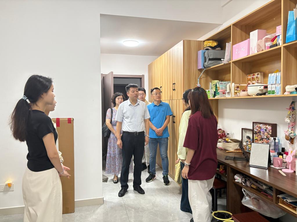 在实习学生驻地,汪上一行细致察看学生宿舍,关切询问通勤、伙食、工作强度等情况。了解到我校实习生良好的生活保障和精神面貌时,他表示,学生能够安心实习、工作和生活,是学校最大的牵挂。