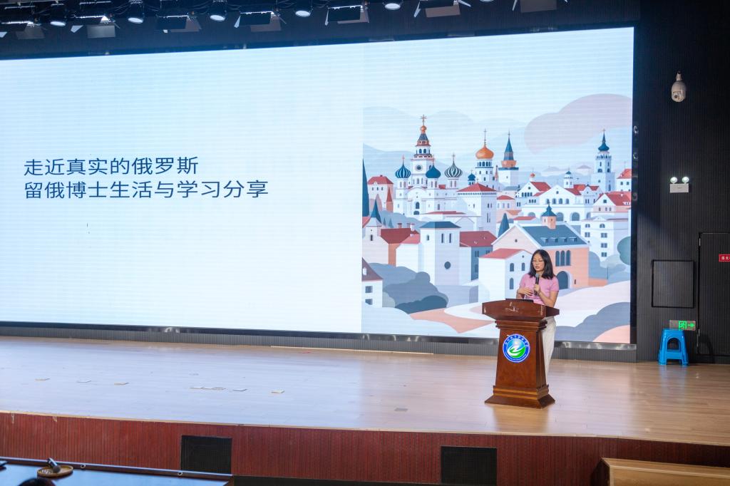 分享环节中,两位博士结合自身在俄罗斯多年的留学与生活经历展开介绍,尤其聚焦于俄语学习技巧。通过丰富的图片、实例和亲身经历,生动展示了留学生活经历。针对师生尤为关注的俄语学习话题,博士团队结合专业特点,分享了实用学习策略,讲解俄语在实践中的运用技巧,为中外合作办学专业学生的语言学习与专业发展提供了实用建议。
