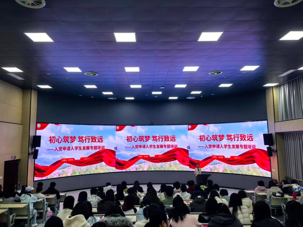 曹慧敏同志作《初心筑梦,笃行致远——入党申请人学生发展专题培训》讲座,鼓励同学们将理想信念转化为实际行动,在学好专业知识的同时,积极参与社会实践、志愿服务和校园文化活动,在实践中增长才干、服务社会,以扎实业绩和全面表现接受组织检验。