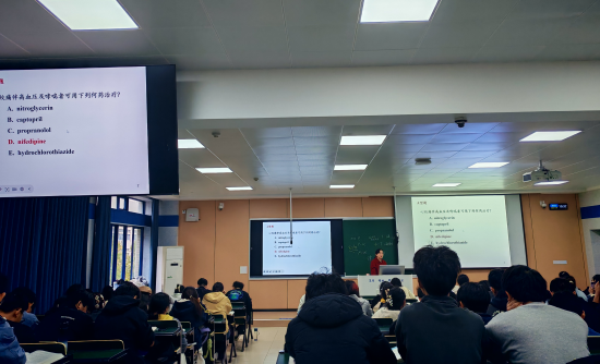此外,三位教师还观摩了王颖副教授讲授的《药理学》课程。王颖副教授主讲的内容为“作用于血液系统的药物”,她清晰梳理了各类抗凝血药、抗血小板药、促凝血药及纤维蛋白溶解药的作用机制、临床应用与不良反应,课堂内容详实,逻辑脉络清晰,理论紧密联系临床实际,展现出了扎实的教学功底。