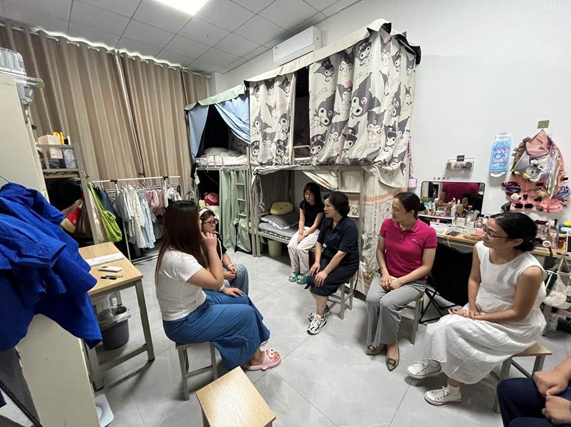 会后,学院前往实习生宿舍,实地察看学生的居住环境和生活条件,与实习生们亲切交流。同学们分享了实习期间的收获与体会。徐旭勉励同学们要珍惜实践机会,夯实专业技能,提升职业素养,为未来职业发展打好基础。