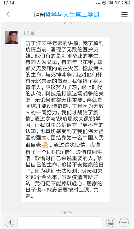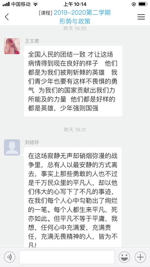 根据《中共安徽省委教育工委安徽省教育厅关于组织“全省大学生同上一堂战‘疫’思政大课”的通知》(皖教工委函〔2020〕68号)要求,为引导广大学生把疫情当教材、把困难当磨砺,4月23日下午,思政部教师组织学生齐聚云端,同上一堂战‘疫’思政大课。