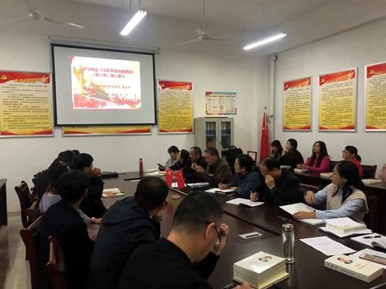 为了严格落实“三会一课”制度,思政基础部党总支书记季金年以“学习领会《习近平谈治国理政》第三卷核心要义”为主题,为全体党员教师讲授了一场精彩生动的党课。会上,季金年从时代背景、重大意义、核心要义、内在逻辑四个方面来介绍此次学习主要内容,并与全体党员交流学习心得体会。季金年强调各党员要进一步提高政治站位保持学好用好《习近平谈治国理政》第三卷的高度自觉,要以学习跟进推动认识跟进、思想跟进、行动跟进,使每名党员都成为一面鲜红的旗帜,每个支部都成为党旗高高飘扬的战斗堡垒。推动持续掀起学习贯彻习近平新时代中国特色社会主义思想热潮。