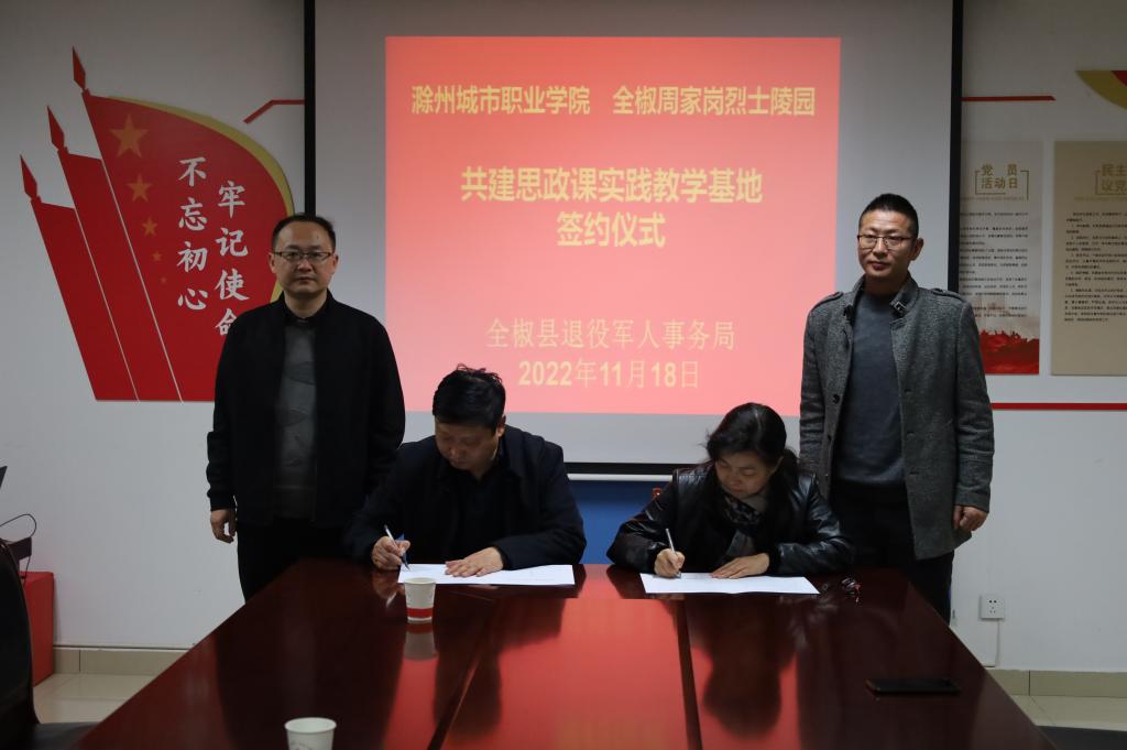 牛春雨强调,在周家岗烈士陵园和吴敬梓纪念馆建立思政课实践教学基地,是落实新时代思想政治工作的重要途径,是丰富思政课教学内容与形式的有力实践,学校要充分利用本土红色资源和优秀地方文化资源优势,丰富思政课教学内容,不断提升思政课育人实效。希望共建双方不断拓宽合作内容,丰富合作形式,将实践教学基地打造成为开展思政教育的文化滋养平台,成为思政课理实一体化的实践平台,不断推动新时代的思想政治教育工作高质量发展。