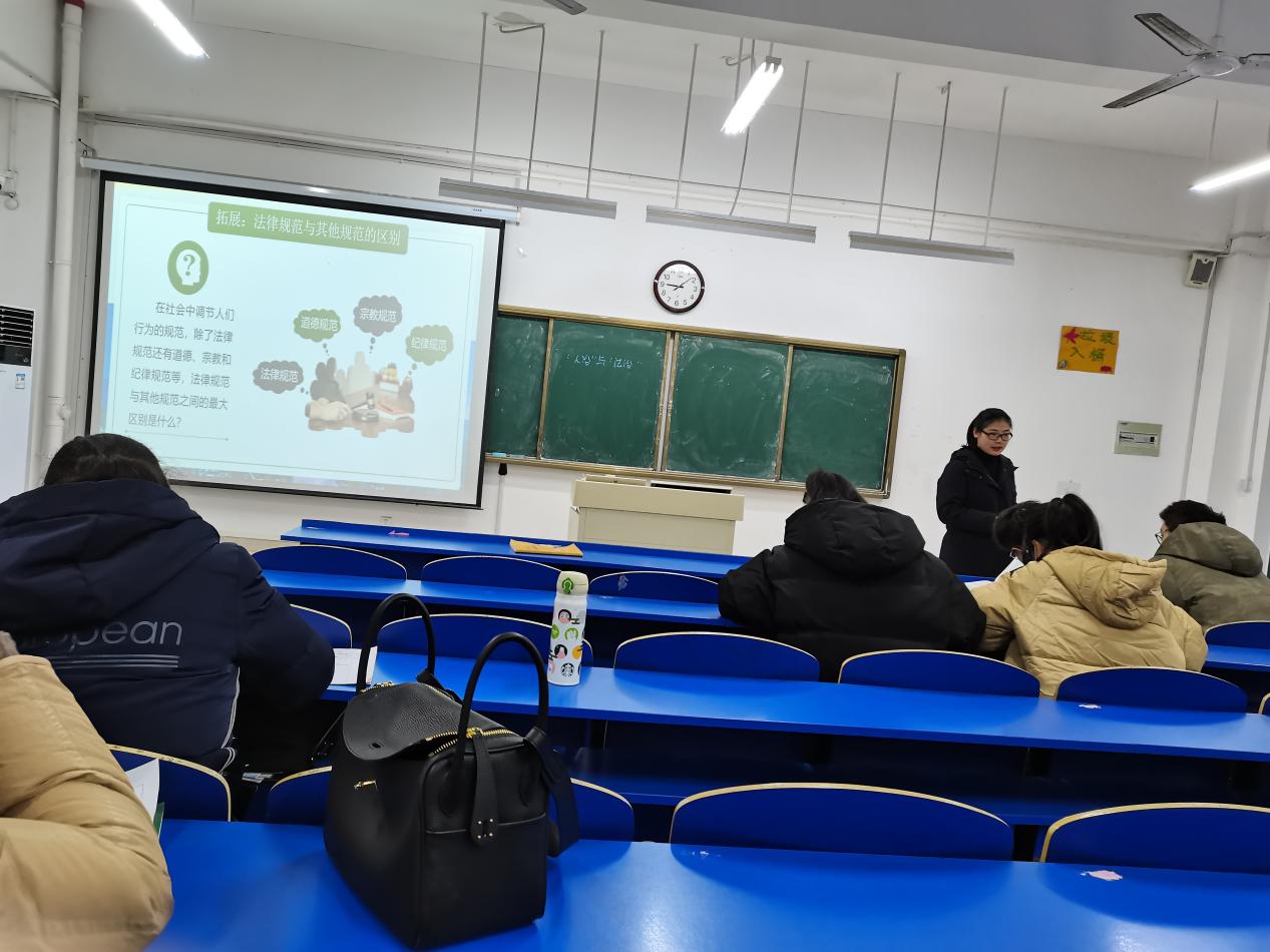 本次“汇报课”活动课程内容为《思想道德与法治》第七专题“社会主义法律的特征和运行”。三位新入职教师瞿讯莲、高立萍、张秀梅围绕同一专题进行授课,从不同侧面展示新教师不同的课堂风采。从共性看,三位教师课堂教学中,注重学生对知识点的回顾,通过提问引发学生们思考,导入新课,做到前后贯通,过渡自然。在课堂上适当运用小视频、案例等辅助教学手段,激发学生的主动性和积极性,营造了良好的教学氛围;从个性看,高立萍老师能熟练地掌握教材,根据学情灵活地处理教材,案例鲜活,层层递进,环环相扣,课堂张弛有度,体现了法律专业毕业教师的深厚理论功底。