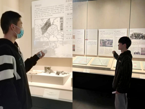 滁州博物馆内的展品内容丰富、造型各异、风格多样,本次实践教学由学生授课、学习讨论、教师总结三部分组成。首先由学生代表针对《襟江带淮名山秀水——滁州自然风物陈列》和《风云江淮诗咏琅琊——滁州历史文化陈列》两个板块进行授课。