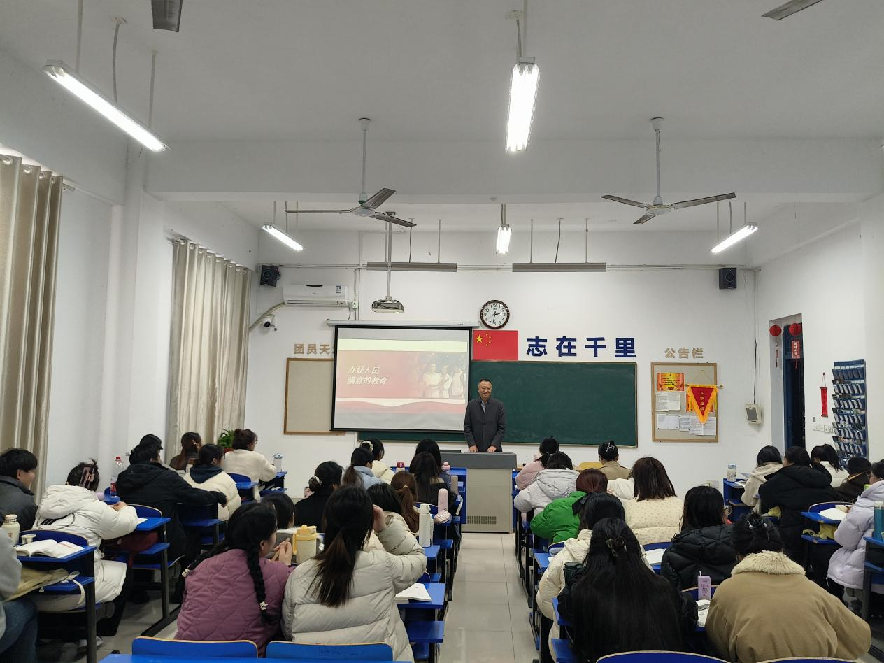 为深入学习贯彻党的二十届四中全会精神,切实发挥思政课立德树人关键作用,充分发挥学校领导干部在思想政治教育主渠道中的引领示范作用,12月9日下午,校党委书记王燕永走进仁爱楼109,以“办好人民满意的教育”为主题,为25级护理本科1班全体学生讲授了一堂内涵深刻的思政课。