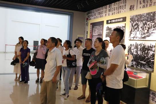 在烈士纪念馆解说员的引导下,大家怀着无比崇敬的心情参观了展馆。在纪念馆内,党员们跟随导游的讲解一路参观,仔细地观看珍贵的文物、文献、照片等资料,认真聆听讲解当年抗日战争、解放战争的革命故事。在革命战争年代,在艰难困苦的条件下,先烈们不顾个人安危,出生入死,经受了血与火的洗礼,为共和国建立了不朽的功勋。大家再次被刘少奇、叶挺、罗炳辉等老一辈无产阶级革命家和千千万万的烈士们的壮烈事迹所感动。
