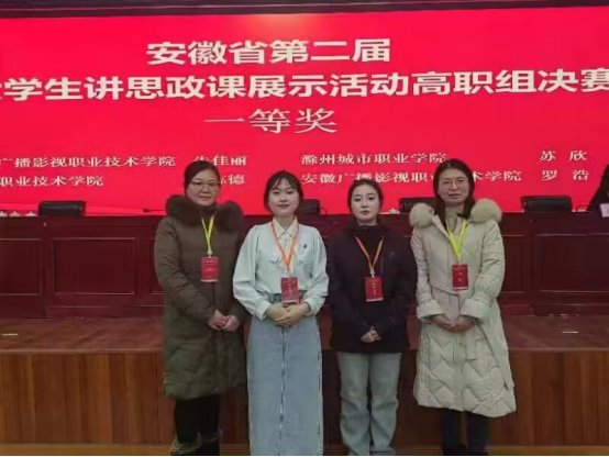 为深入学习贯彻习近平新时代中国特色社会主义思想,发挥思政课是落实立德树人根本任务的关键课程作用,根据《中共安徽省委教育工委关于组织开展第二届大学生讲思政课展示活动的通知》,我校6月份组织开展了首届大学生讲思政课展示活动,经校级推荐、专家评审,报送4件作品参加安徽省第二届大学生讲思政课皖北片区赛。12月5日,安徽省第二届大学生讲思政课片区赛评审结果公示,由刘丽、蔡淼指导的苏欣团队作品《弘扬抗战精神,赓续红色血脉》获二等奖,并取得参加省决赛资格;顾恩平、王奕指导的王海青团队作品《讲好中国故事塑造可信可爱可敬的中国形象》,刘燕燕、李千叶指导的乔继蕊团队作品《生逢盛世青年当有为》获三等奖。