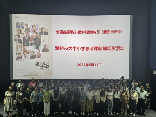 为学习贯彻习近平总书记关于学校思政课建设的重要指示精神,进一步厚植思政课教师立德树人、躬耕教坛的教育情怀。5月31日晚,我院组织今年新入职教师参加了由滁州市大中小学思政课一体化共同体举行的全国首部思政课教师题材故事片《我要当老师》观影活动。此次活动由滁州学院举办、滁州市大中小学思政课教师代表共100余人参加了此次活动。