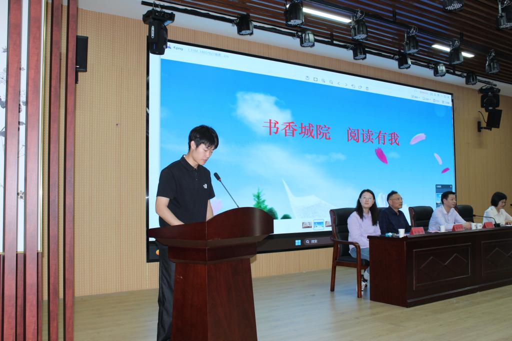 陈馆长介绍了本次读书月活动内容及安排,希望读书月活动能在学校掀起一股校园读书热潮,营造一种读书氛围。她倡议:从我做起,从现在做起,让我们一起走进图书馆,让读书成为每个城院人的常态,让校园溢满书香。