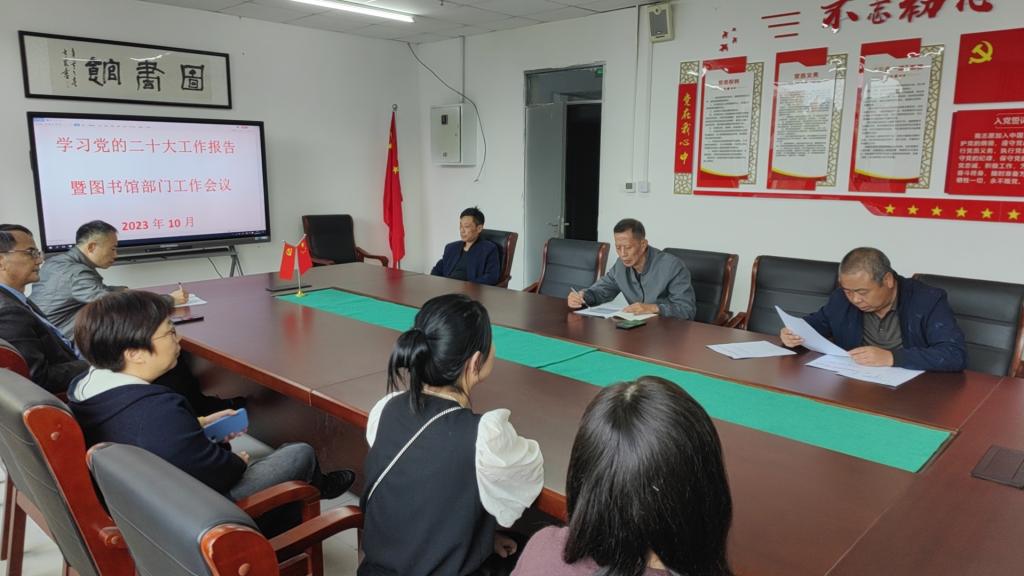 吴忠山副馆长带领大家学习了《高举中国特色社会主义伟大旗帜为全面建设社会主义现代化国家而团结奋斗——在中国共产党第二十次全国代表大会上的报告》中“实施科教兴国战略,强化现代化建设人才支撑”和“推进文化自信自强,铸就社会主义文化新辉煌”等章节,并结合本馆实际和学校“双高”建设对图书馆要求组织大家进行的讨论;吴忠山强调:报告为图书馆发展指明了方向,提供了遵循,图书馆在今后的工作中将进一步完善文化基础设施建设,优化阅读环境,逐步提升文化服务能力,积极开展丰富多彩的阅读推广活动,打造“书香校园”;同时要求全体馆员学习报告要与自身的工作相结合,要以学铸魂,以学增智,以学正风,以学促干,真正使学习产生实效;通过学习,馆员们深刻意识到图书馆在“推进文化自信自强,铸就社会主义文化新辉煌”中责任重大、使命光荣,表示要尽力办好师生满意的图书馆。