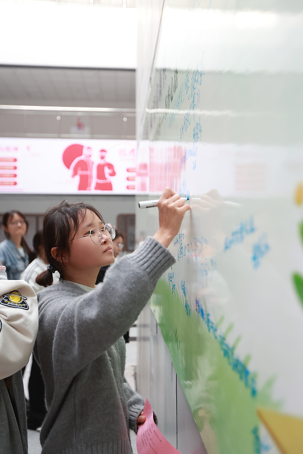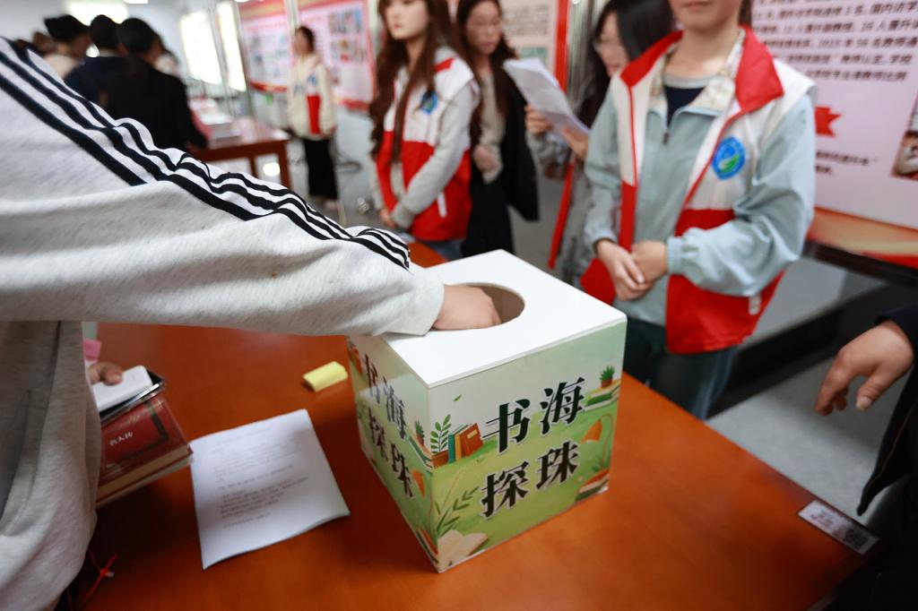 仪式结束后,四项特色趣味读书活动同步有序开展,现场师生踊跃参与、热情高涨、氛围浓厚。书海探珠知识竞答环节,师生从容应答、精准作答,在趣味互动中巩固文学常识、提升知识储备;书语传声经典诵读环节,师生深情朗读经典名篇与优秀作品,声情并茂、字字入心,用声音传递文字力量、感受阅读温度;书山寻宝馆藏探秘环节,师生运用文献检索技巧、依托阅读积累循着线索查找图书,在实践探索中熟悉馆藏资源、提升信息素养;书香心语文化墙展示环节,师生提笔书写读书心得、成长寄语与好书推荐,一句句真挚感悟定格书香瞬间、凝聚阅读力量。系列活动兼具知识性、趣味性、互动性,充分激发师生阅读热情,营造乐学善读、交流互鉴、书香满校园的良好育人氛围。