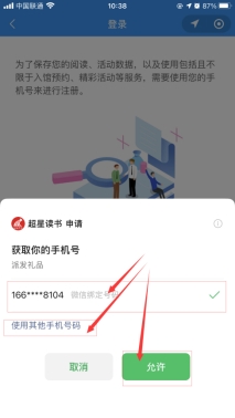 选择手机号或使用其他手机号码,点击允许;