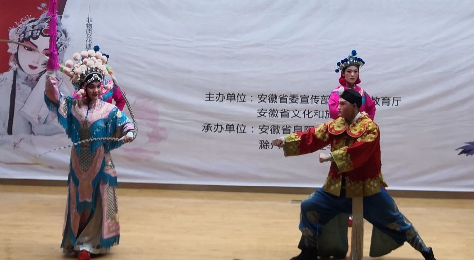 为弘扬中华传统文化,传承普及戏曲艺术,丰富校园文化生活,10月15日下午,由中共安徽省委宣传部、省教育厅、省文化和旅游厅主办,滁州城市职业学院和阜阳市演艺集团承办的2019年“徽风皖韵进高校”戏曲专场活动在我院图文中心四楼报告厅隆重举行。学院党委书记米德成、学院党委委员、副院长施向阳、各部门负责人以及300余名师生全程观看了此次演出。