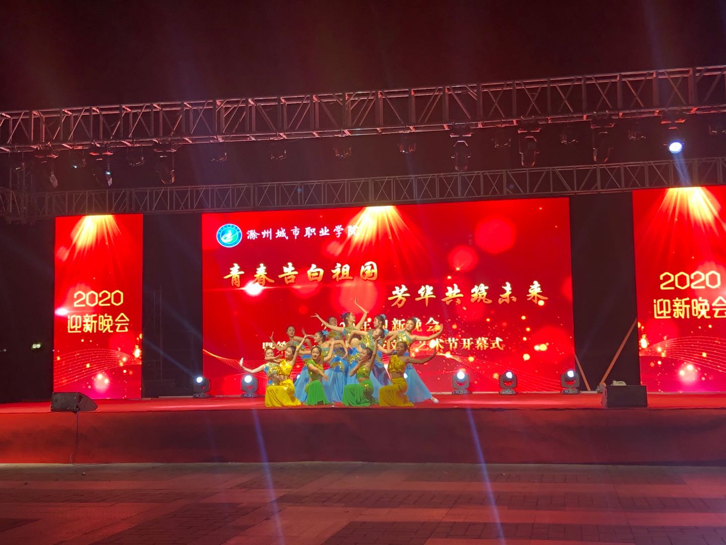 青春告白祖国,芳华共创未来!10月20日,滁州城市职业学院2020年迎新晚会暨第十届科技文化艺术节开幕式在学院南广场隆重举行。学院领导牛春雨、施向阳、曹士东,各部门、系部负责人,承担本次军训任务的全体教官以及2000余名师生欢聚一堂,共同观看了演出。