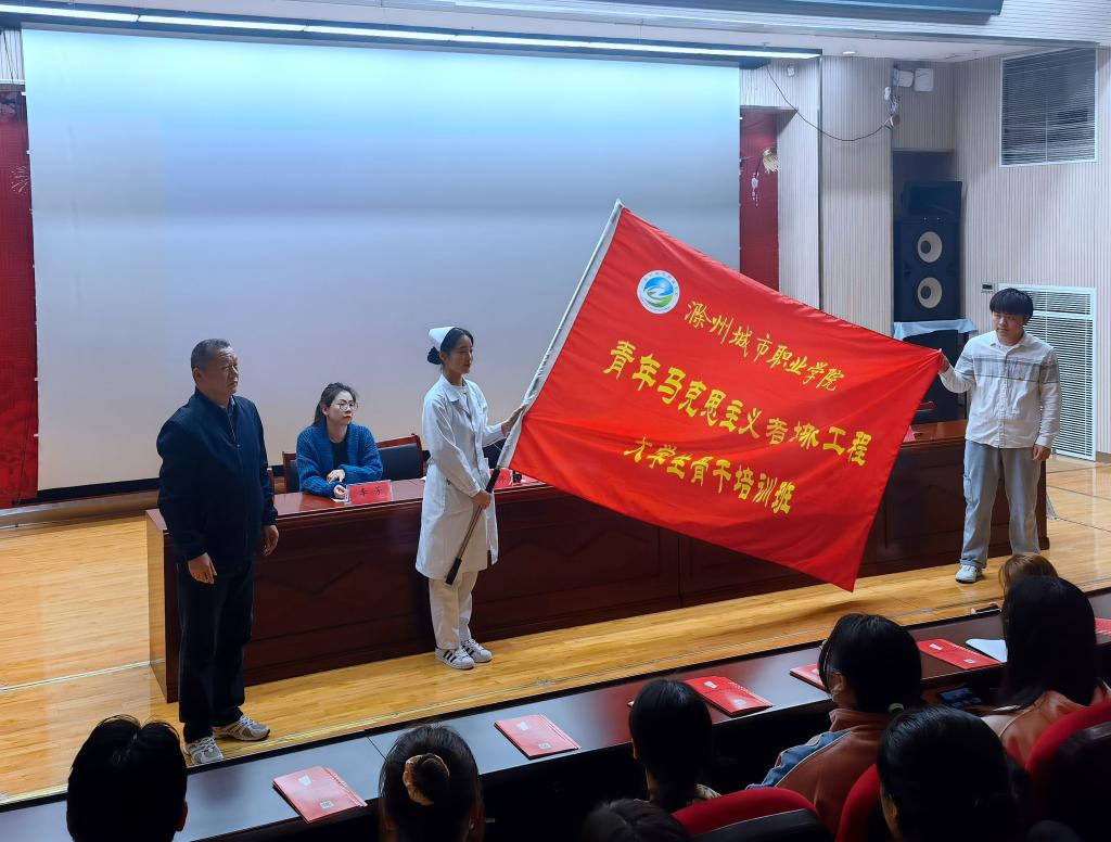随后,施向阳为本次开班仪式授旗并讲话。施院长在讲话中对“青马工程”的开班表示热烈的祝贺,阐述了“青马工程”的重要意义,同时对全体学员提出殷切希望,他希望学员们深化理论学习,坚定理想信念,加强实践锻炼,锤炼过硬本领,紧密联系同学,提高服务意识,加强作风建设,发挥示范作用,以高度的理论自觉、鲜明的实践品格、奋进的创新精神,引领带动广大青年学子努力成长为又红又专、德才兼备、全面发展的新时代青年,为我院建设成为技能型高水平大学贡献力量!