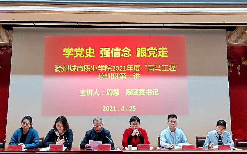 为进一步引领青年学生骨干深入学习贯彻习近平新时代中国特色社会主义思想和党的十九大精神,加强当代青年大学生“学党史、强信念、跟党走”学习教育,培养一批德智体美劳全面发展的社会主义建设者和接班人。4月25日下午,我院在四楼报告厅举办“学党史、强信念、跟党走”学习教育暨2021年“青马工程”培训班开班仪式。出席开班仪式的有:院党委委员、副院长施向阳,团委书记周慧,各系团总支书记,2021年“青马工程”全体学员及全院团支部书记,仪式由团委副书记陈婷婷主持。