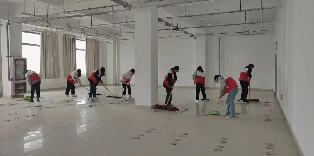 活动现场,学生志愿者统一着志愿者马甲、佩戴红袖章,手持扫帚、夹子等卫生工具,充分发挥不怕累、不怕脏的精神,对本校图文中心图书馆进行集中清理各处的“牛皮癣”,对地面、门框、玻璃及卫生死角进行了清扫,并细致进行垃圾分类,确保不留卫生死角。