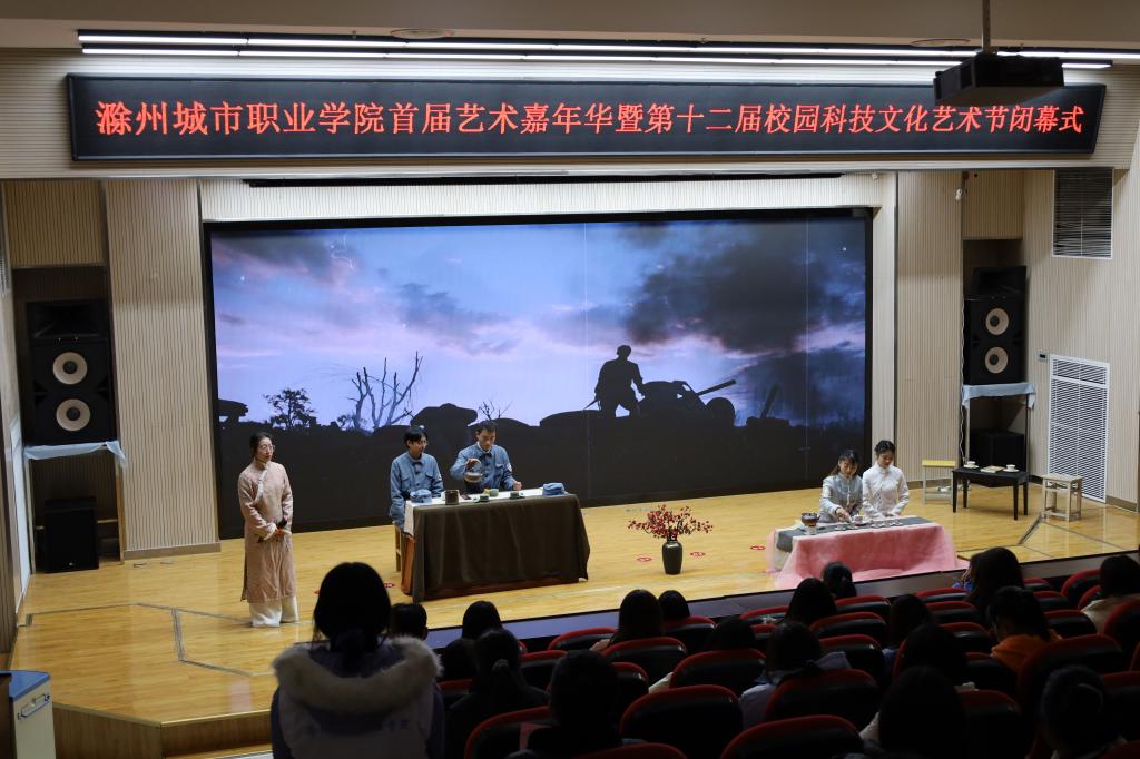 吴惠珍致闭幕词。吴惠珍首先对本届校园科技文化艺术节的圆满成功表示热烈的祝贺,向组织和参与本届校园科技文化艺术节的各位老师和同学们表示衷心的感谢!并引导我校青年学子开拓进取、不断努力,用青春与智慧、激情与活力,为滁州城市职业学院建设技能型高水平大学贡献青春力量!