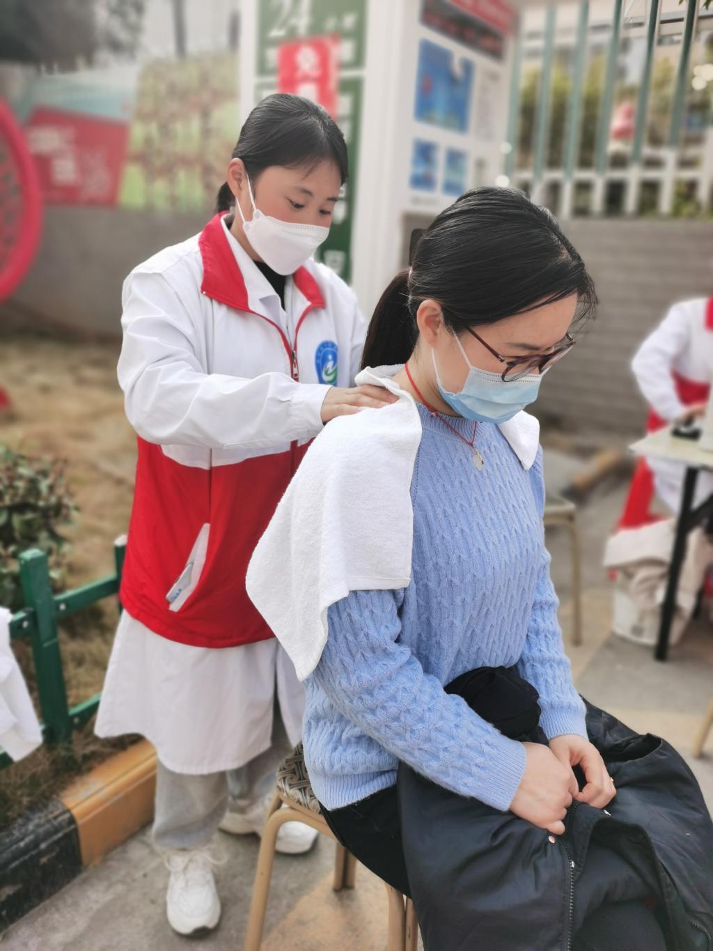 现代人的生活节奏过快,很多人身体都呈现亚健康状态,颈椎是突出问题之一。听到有推拿服务,很多社区居民都慕名而来体验。来自我校中医康复专业的青年志愿者们发挥专业特长,在了解居民的身体情况后,有针对性地对其进行颈、肩等穴位按摩,居民们在体验之后纷纷表示推拿按摩有效缓解了身体的疼痛和不适,并向志愿者的精湛技艺表达了由衷赞叹。