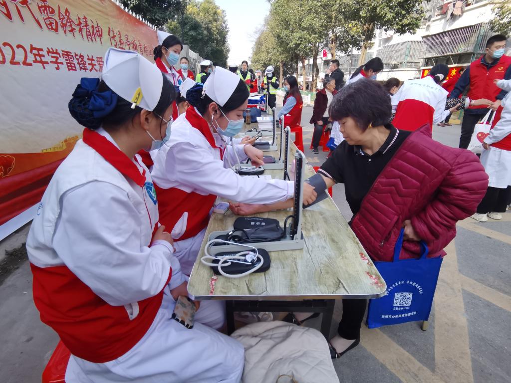值“3·5学雷锋日”到来之际,3月4日上午,由滁州市政协办公室、共青团滁州市委、滁州市红十字会、滁州城市职业学院等多家单位联合开展的“弘扬新时代雷锋精神,传递亭城青春正能量——2022年学雷锋关爱志愿者服务进社区”活动在夏岗社区举行。在校团委老师的带领下,我校“半根草”、“医康+”、“南丁格尔”等10余名青年志愿者参加了本次活动,并为社区居民提供了量血压、推拿等健康义诊服务。