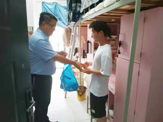 管理与信息学院党总支书记陈兴旺、副书记秦海娇与辅导员、班主任走进学生宿舍,开展宿舍卫生大检查,向学生强调少聚集、戴口罩、勤洗手、常通风等疫情防控手段,宣传、解读校园疫情防控政策。恰逢中秋佳节,老师们还为同学们带去了月饼、餐券,陪同学生共进午餐,与学生开展深入交流,了解并解决学生在学习和生活中遇到的问题。