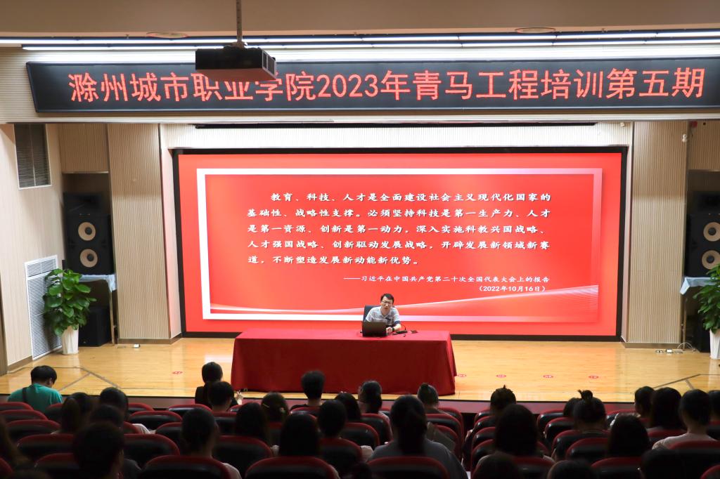 5月18日下午,我校在图文中心四楼报告厅举办青马工程培训班第五期——“社会主义现代化建设的教育、科技、人才战略”。本次会议主讲人为马克思主义学院副教授刘立峰,2023年青马班全体成员参会。