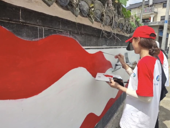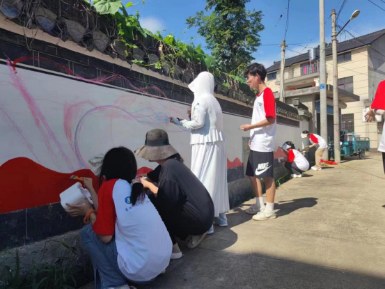 美化乡村小分队在白地镇洋川村开展户外墙绘活动。大学生以乡村振兴、人居环境整治为主题,结合当地特色,发挥自身专业,以墙为布,克服酷暑,在坚持不懈的努力下,完成《乡村振兴》的墙绘画作,用群众喜闻乐见的方式在墙壁上图文并茂地呈现出来,得到当地居民的一致好评!我校大学生将艺术融入乡村生活,真正在社会实践活动中做到“受教育、长才干、作贡献”,成为助推美丽乡村建设一道亮丽的风景线!