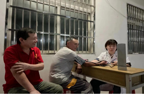 吕婷婷老师开展义诊活动,量血压以及为老年人解疑答惑,对于“三高”老人更是加以叮嘱日常生活中用药及饮食等注意事项。