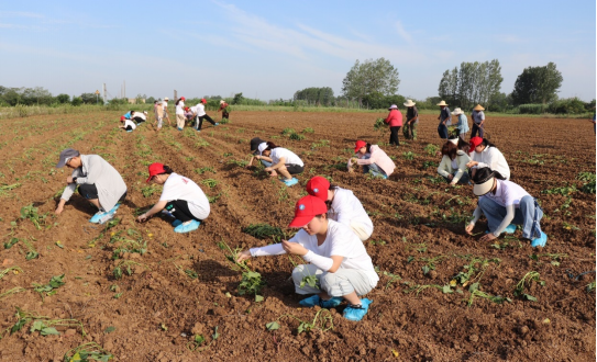 2023年6月27日,滁州城市职业学院师生到达目的地——凤阳县小溪河镇金庄村。此后几天,为更好地践行实践,师生们自发融入群众,与村民们共同劳作,帮助当地村民种植红薯苗,种植过程其乐融融,充满欢声笑语。
