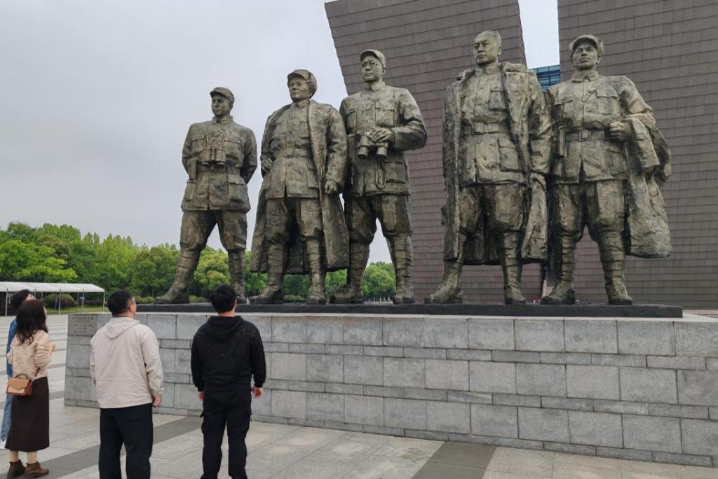 参观结束后,全体人员来到渡江战役纪念馆雕像前缅怀革命先辈,学习革命先辈事迹,感受先辈们英勇无畏、不怕牺牲的精神。