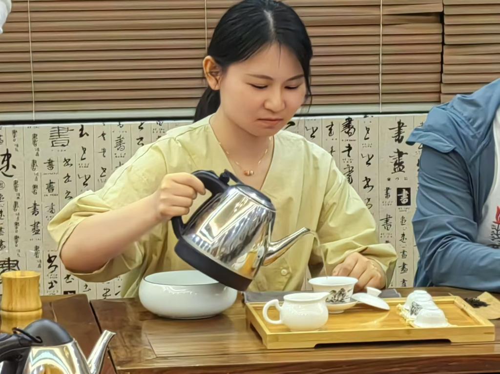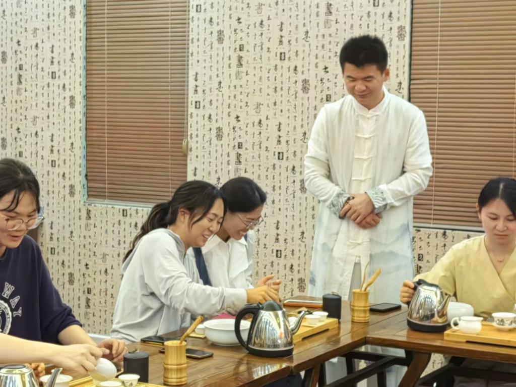 课程中,茶香四溢,青年们热情高涨。茶艺老师向参加课程的青年详细介绍了茶文化的发展过程、茶叶的种类等基本知识,展示了茶盖碗冲泡技巧,讲解了茶道的基本礼仪。