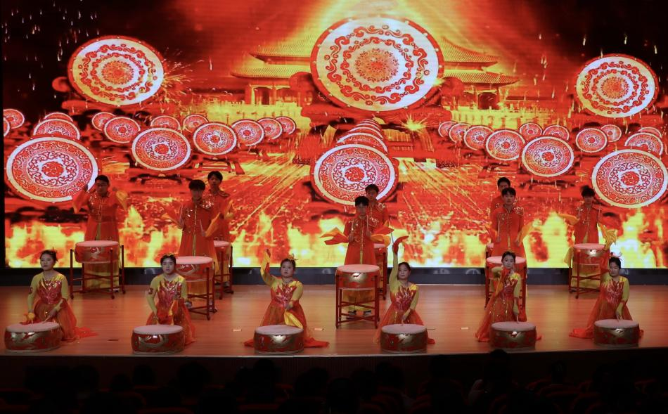 活动在鼓舞《盛世中华》中拉开帷幕,鼓声阵阵、旋律激昂、气势磅礴,点燃了全场观众的热情。此次活动歌曲、朗诵、舞蹈、器乐等多种艺术形式精彩纷呈。美育小课堂《裙起中国情》带我们感受了中国古典服饰的魅力,《记忆中的旋律》演绎了由四大名著改编的经典影视剧主题曲,悠扬婉转、余韵悠长,舞蹈《民族大融合》展现了中华民族一家亲的热闹氛围,男声小合唱《包楞调》旋律欢快激昂,唱出"中国的花腔"。