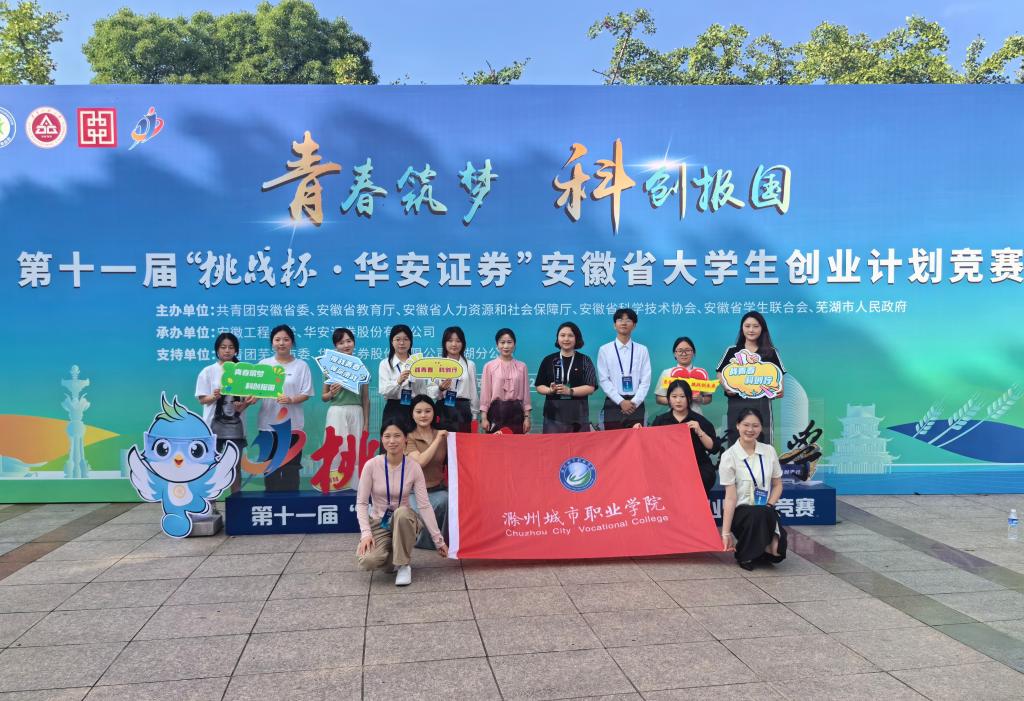 6月18日至20日,由团省委、省教育厅、省人力资源社会保障厅、省科协、省学联、芜湖市人民政府联合主办的第十一届“挑战杯·华安证券”安徽省大学生创业计划竞赛省级决赛在芜湖成功举办。学校11件作品获得佳绩,在入围省级决赛的5件作品中,《红秀添乡——在新质生产力背景下,红色文化助力乡村振兴》、《“鼓”舞青春——赋能非遗“花鼓舞”,点亮乡村振兴路》两件作品斩获金奖,获奖数量和质量创学校历史新高。学校获得优秀组织奖。